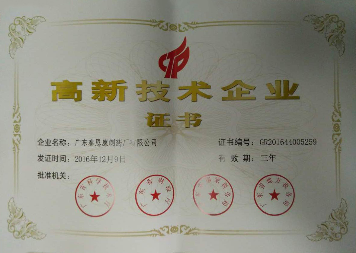 高新技術(shù)企業(yè) 廣東泰恩康制藥廠有限公司