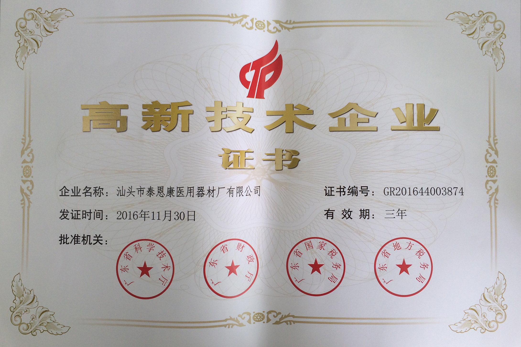 高新技術(shù)企業(yè) 汕頭市泰恩康醫(yī)用器材廠有限公司