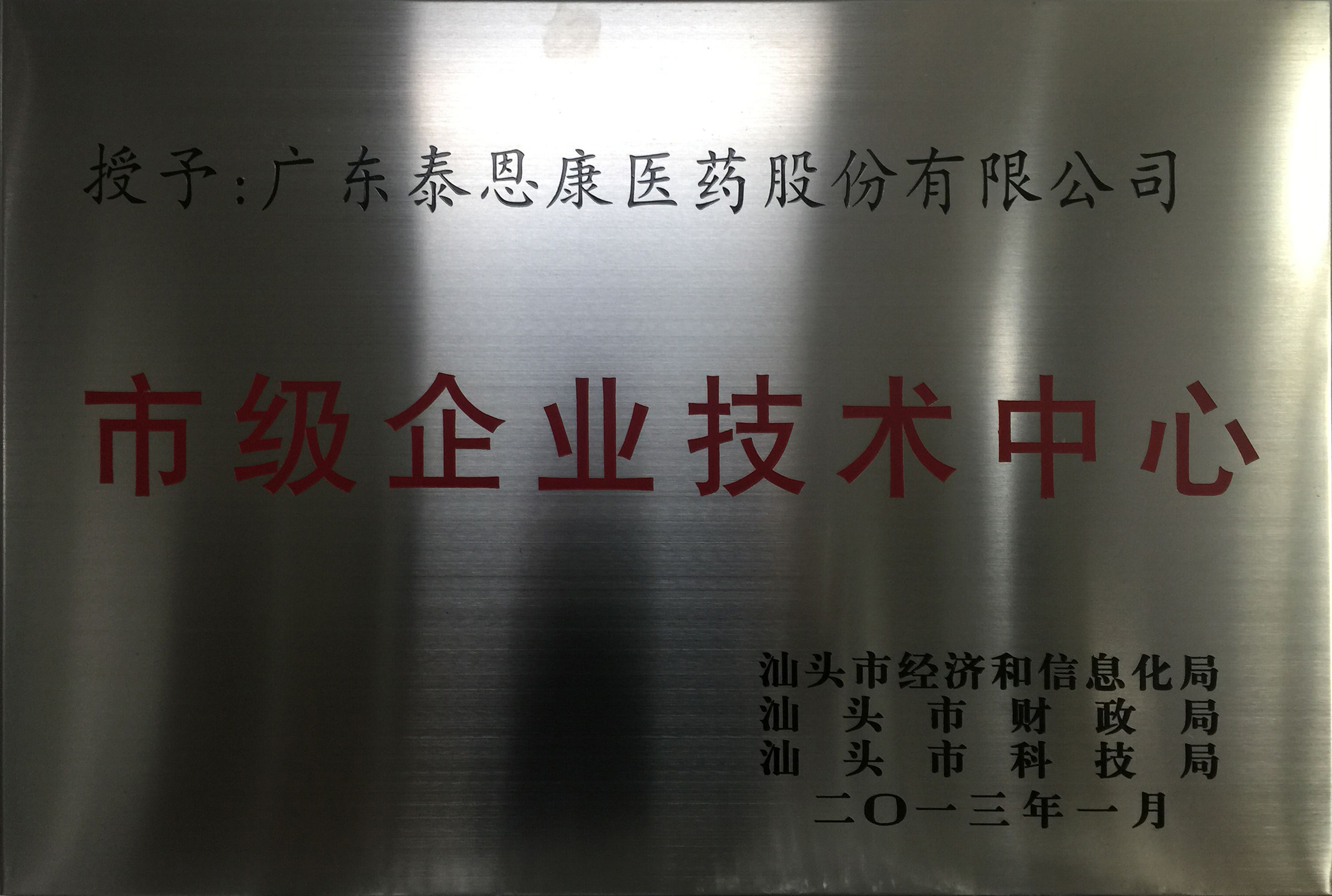 市級(jí)企業(yè)技術(shù)中心 廣東泰恩康醫(yī)藥股份有限公司
