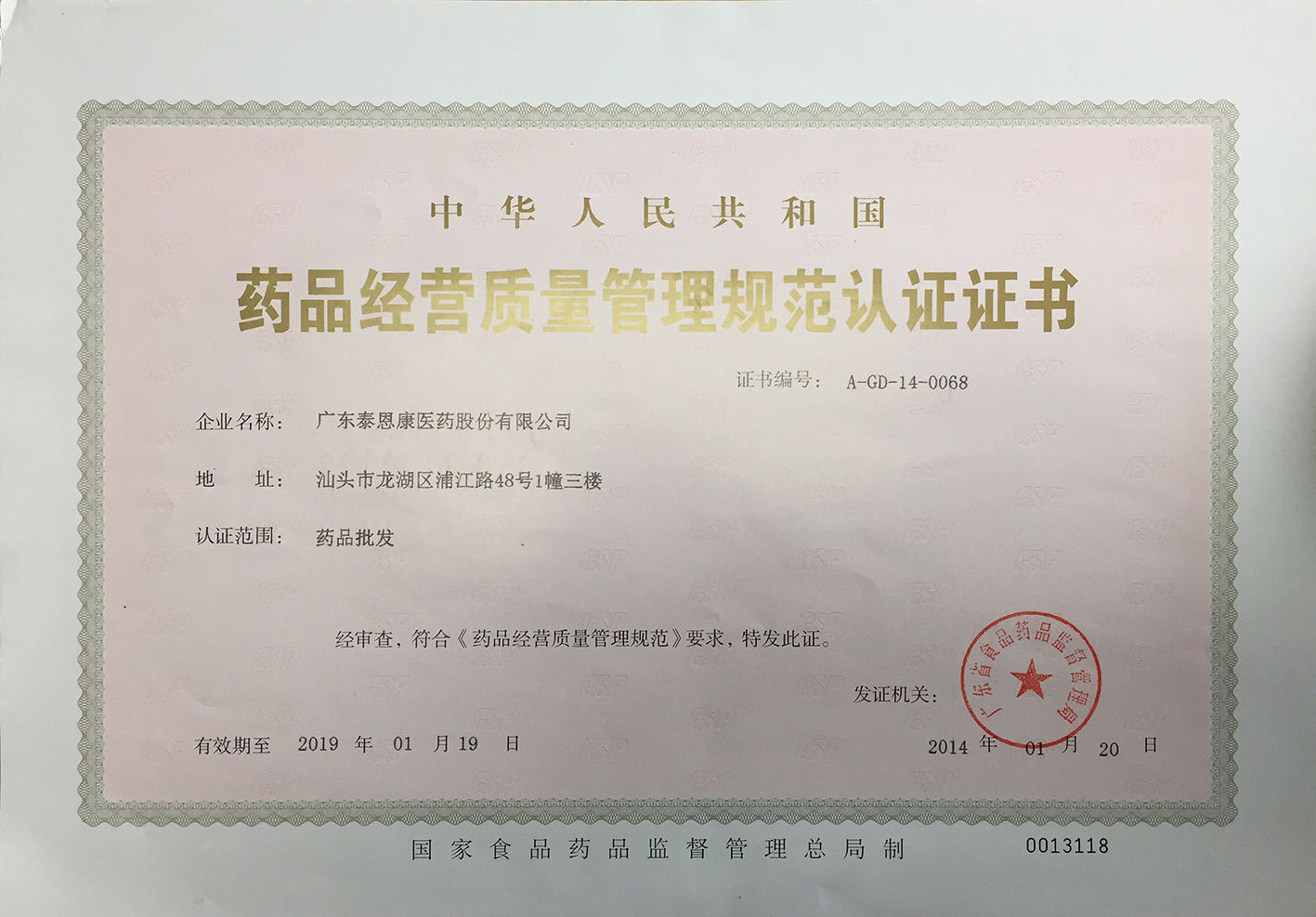 廣東省首批通過藥品經(jīng)營質(zhì)量管理規(guī)范認(rèn)證