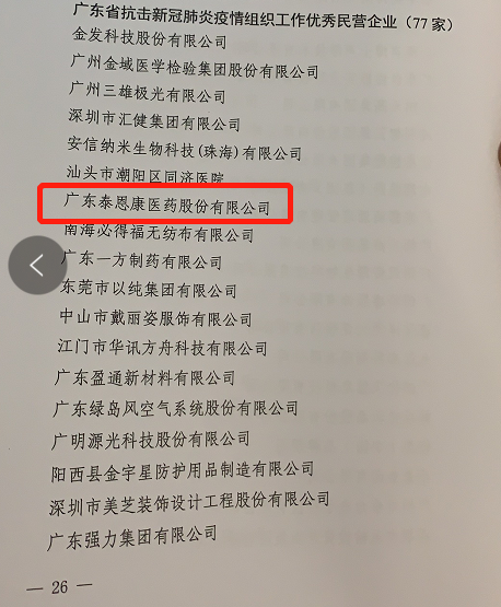 汕頭市泰恩康醫(yī)用器材廠有限公司評(píng)為廣東省新冠肺炎疫情防控物資保障工作重要貢獻(xiàn)企業(yè)