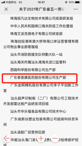 廣東泰恩康制藥廠有限公司評(píng)為汕頭市工人先鋒號(hào)