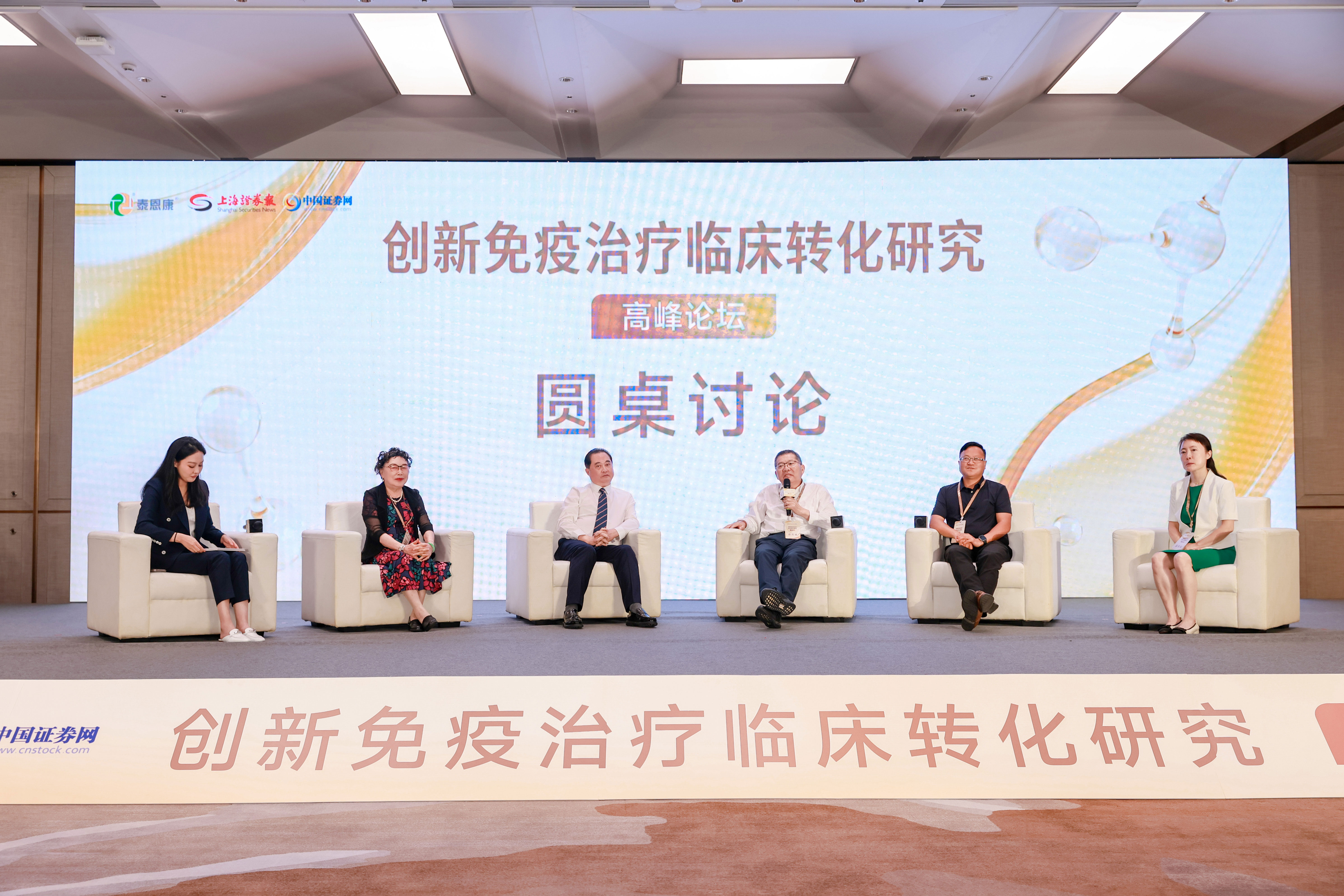在自免領(lǐng)域創(chuàng)新藥臨床轉(zhuǎn)化高峰圓桌討論環(huán)節(jié),馬大為院士、王宏林教授、許愛娥教授、蔣獻教授及董事長鄭漢杰先生圍繞行業(yè)熱點展開了深入研討與交流,共探醫(yī)藥創(chuàng)新發(fā)展的前沿趨勢。